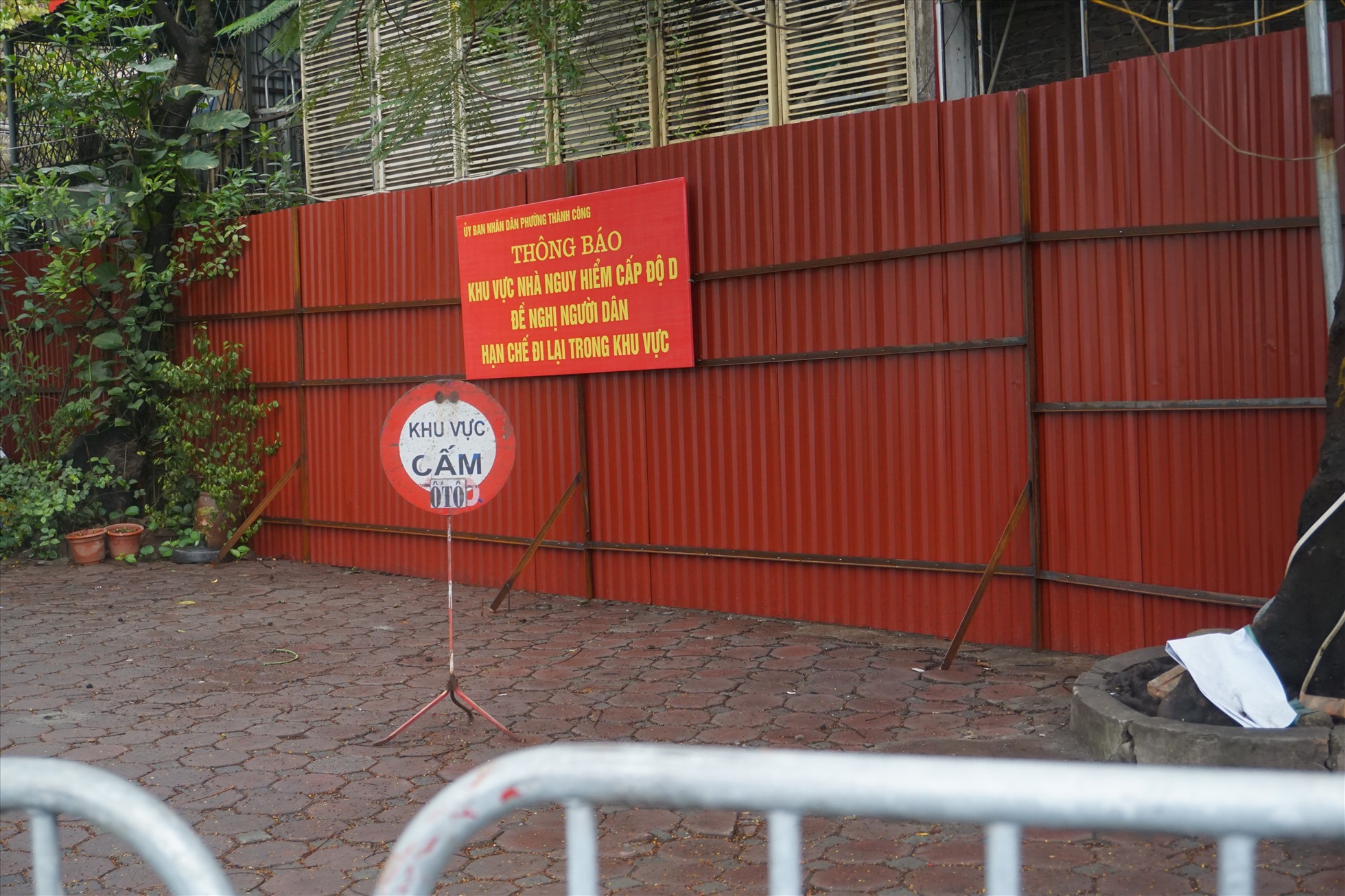 Cách đây gần 1 tháng, lực lượng chức năng phường Thành Công và quận Ba Đình đã tiến hành quây tôn, chắn rào bảo vệ khu chung cư cũ G6A này để đảm bảo an toàn cho các công trình phụ cận.