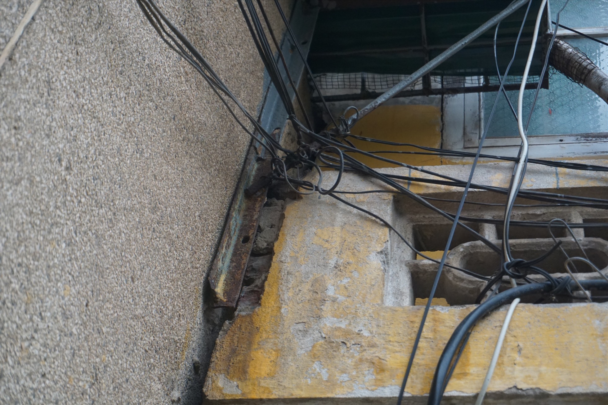 Bức tường đã có nhiều khe nứt. Ảnh: Phương Anh