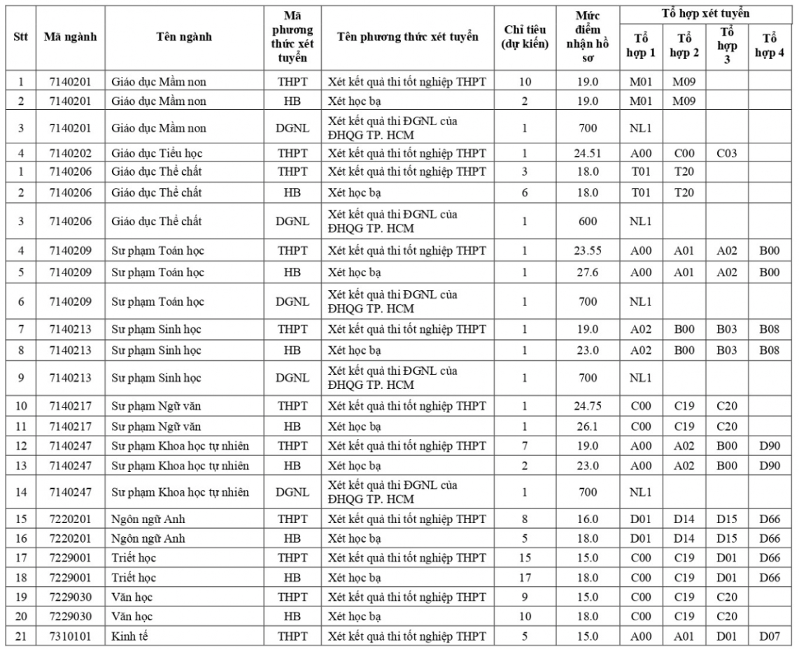 Ngành Giáo dục Mầm non, Giáo dục tiểu học 19 điểm và Giáo dục thể chất 18 điểm.
