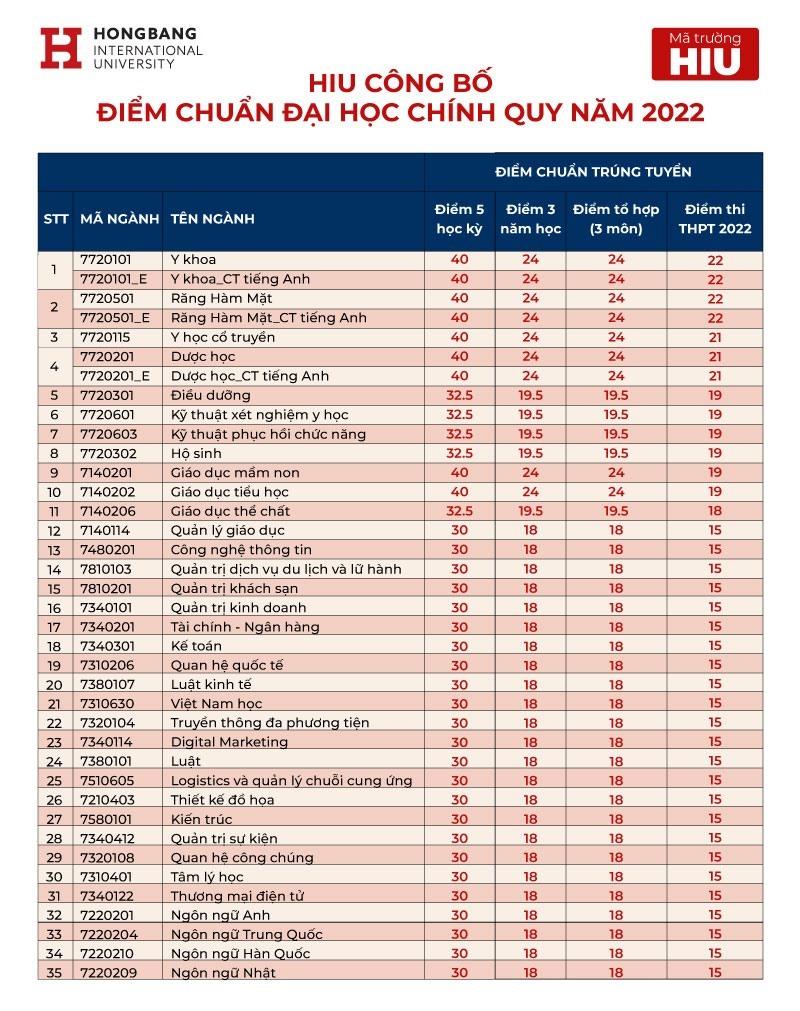 Trường Đại học Quốc tế Hồng Bàng (HIU) xét tuyển bổ sung đại học chính quy năm 2022 cho 35 ngành đào tạo theo 02 phương thức: xét kết quả thi tốt nghiệp THPT 2022 và xét học bạ.