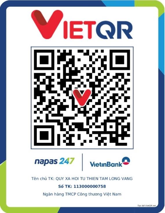 Mọi sự giúp đỡ xin gửi về: Quỹ XHTT Tấm lòng Vàng, số 51 Hàng Bồ, Hoàn Kiếm, Hà Nội. Điện thoại: 024.39232756. Số tài khoản (STK): 113000000758 tại Vietinbank Chi nhánh Hoàn Kiếm, Hà Nội. STK: 0021000303088 - tại Vietcombank - Chi nhánh Hà Nội, STK: 12410001122556 - tại BIDV - Chi nhánh Hoàn Kiếm. Hoặc quét mã QR sau: