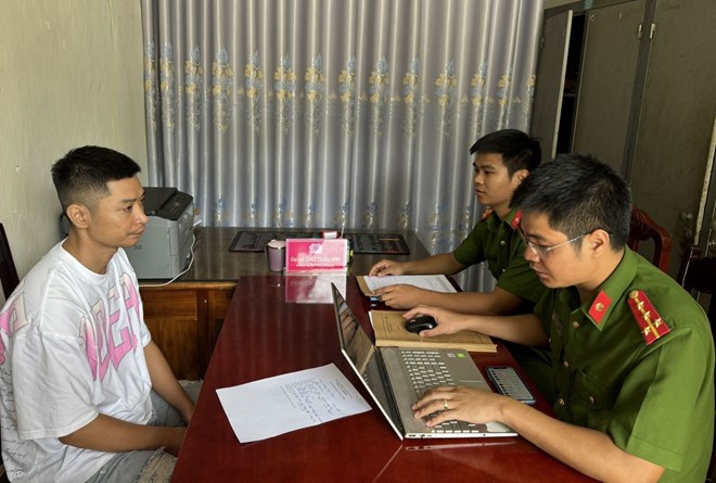 Đối tượng Nguyễn Đức Duy tại cơ quan công an. Ảnh: CATH