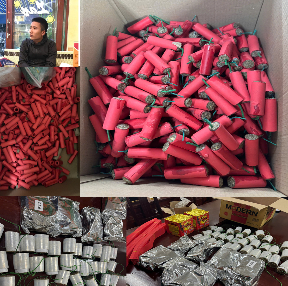 Theo đó, lực lượng Công an đã thu giữ tại chỗ 4kg pháo thành phẩm, gồm: pháo cối, pháo mìn, pháo hoa.. và 26,5kg nguyên liệu cùng nhiều dụng cụ để phục vụ việc sản xuất pháo nổ.