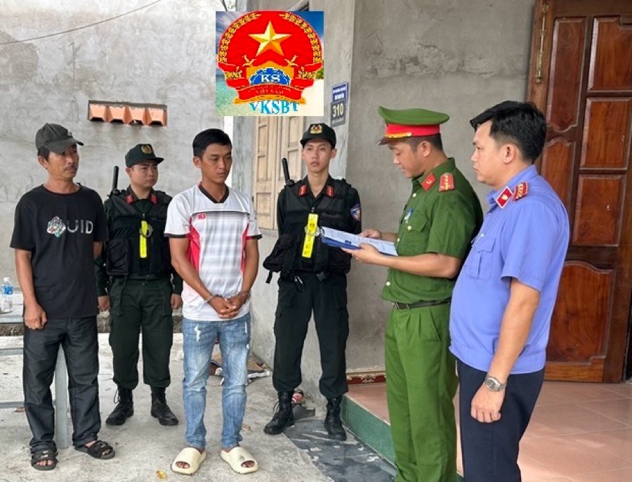 Công an đọc lệnh bắt tạm giam bị can Nguyễn Văn Trung. Ảnh: VKSND Bình Thuận