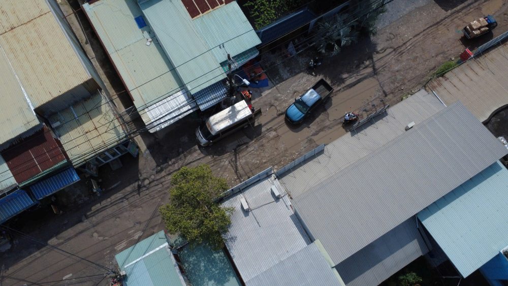 Hình ảnh đường Liên ấp 2-3-4, xã Vĩnh Lộc (TPHCM) dài khoảng 3 km nhìn từ trên cao, xuống cấp nghiêm trọng. Ảnh: Minh Tâm