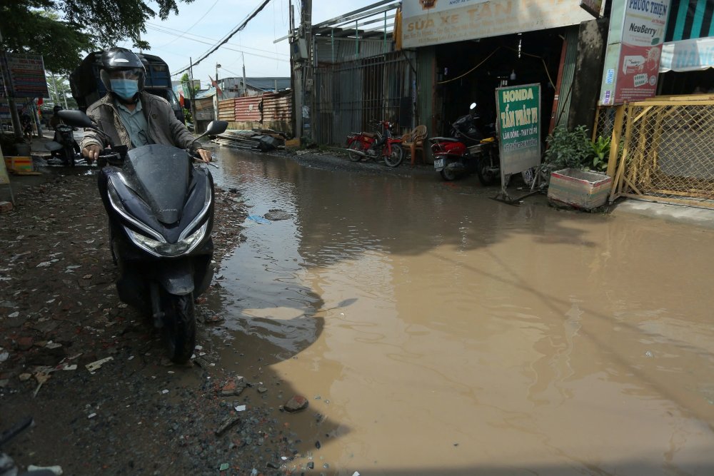 Những ngày qua TPHCM mưa liên tục, nước đọng trên đường không lối thoát. Ảnh: Minh Tâm