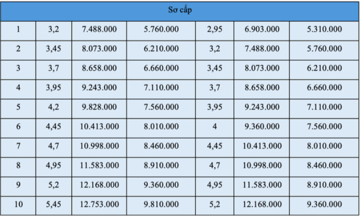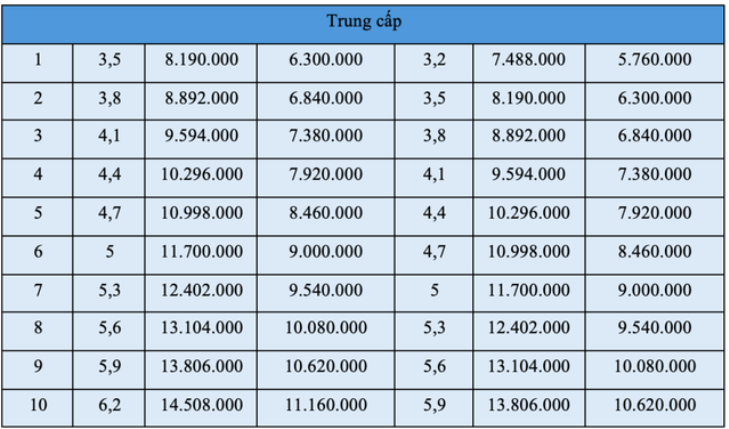 Bảng lương căn cứ theo Nghị định 204/2004 về chế độ tiền lương với cán bộ, công chức, viên chức và lực lượng vũ trang.