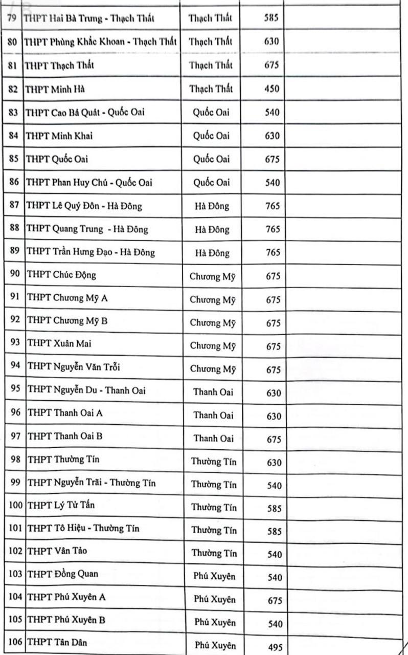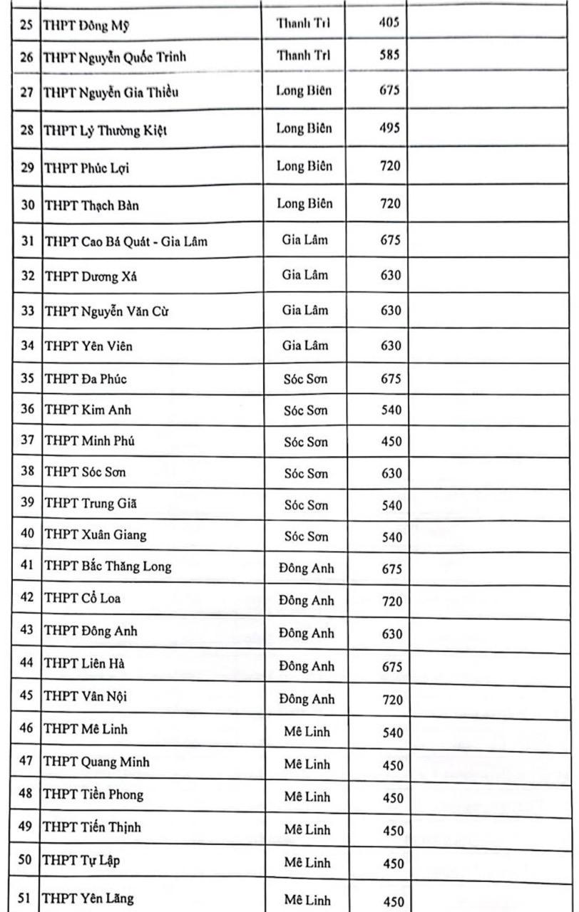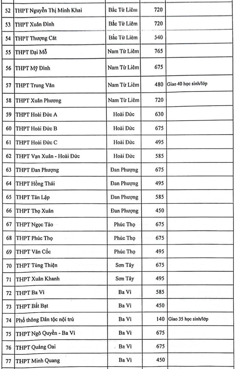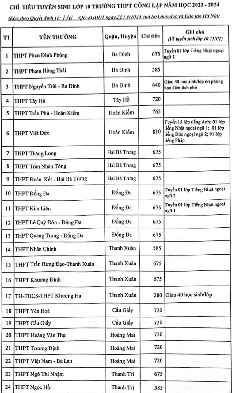 Chỉ tiêu tuyển sinh vào lớp 10 công lập Hà Nội năm 2023. Ảnh: Sở GDĐT Hà Nội