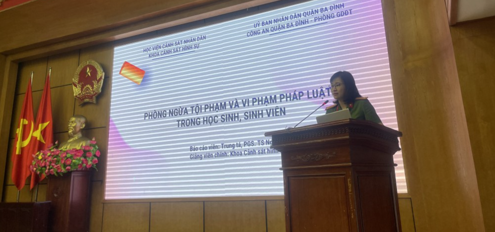 | Trung tá, PGS. TS Nguyễn Thị Thúy Hạnh - Giảng viên Khoa Cảnh sát hình sự, Học viện Cảnh sát Nhân dân chia sẻ với cán bộ, giáo viên quận Ba Đình về phương pháp nhận diện và ngăn ngừa bạo lực học đường |