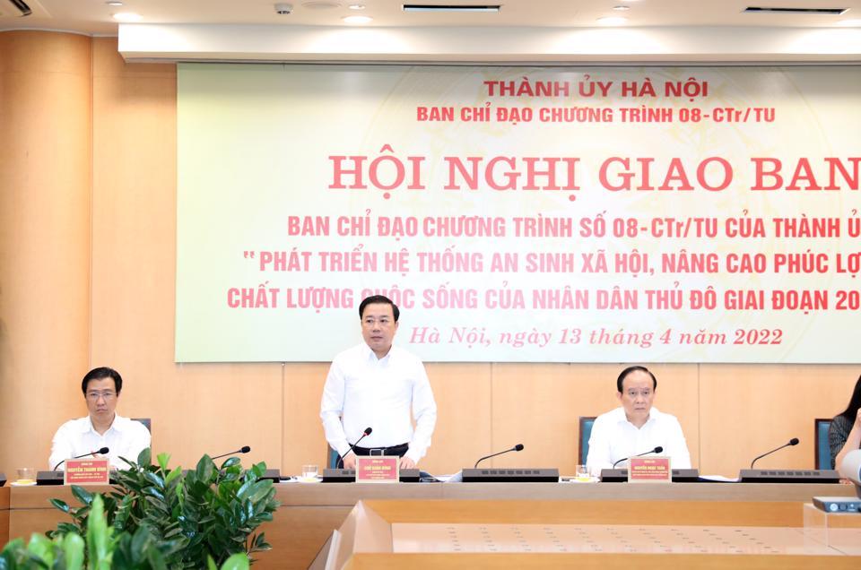 Ngày 13/4/2022, Ban chỉ đạo Chương trình số 08-CTr/TU của Thành ủy về “Phát triển hệ thống an sinh xã hội, nâng cao phúc lợi xã hội, chất lượng cuộc sống của Nhân dân Thủ đô giai đoạn 2021 – 2025” tổ chức Hội nghị giao ban công tác quý I/2022.