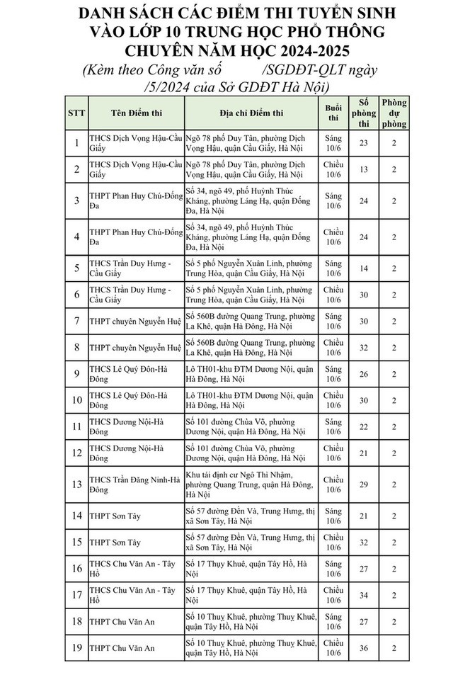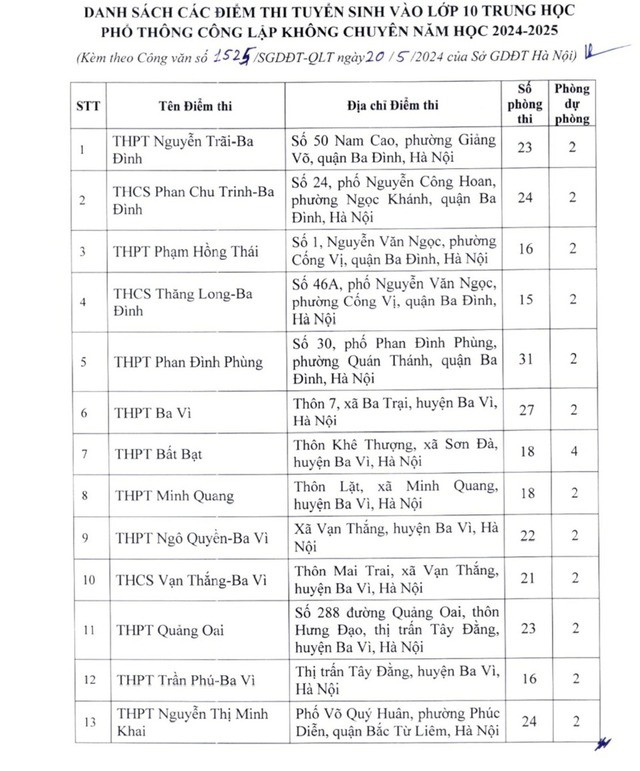 Trong đó, có 201 địa điểm tổ chức kỳ thi tuyển sinh vào lớp 10 các trường THPT công lập không chuyên và 19 địa điểm tổ chức tuyển sinh vào lớp 10 các trường THPT chuyên.