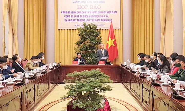 Sáng 24.1, Văn phòng Chủ tịch nước tổ chức buổi họp báo công bố Lệnh của Chủ tịch nước về Luật sửa đổi, bổ sung một số điều của Luật Đầu tư công, Luật Đầu tư theo phương thức đối tác công tư, Luật Đầu tư, Luật Nhà ở, Luật Đấu thầu, Luật Điện lực, Luật Doanh nghiệp, Luật Thuế tiêu thụ đặc biệt và Luật Thi hành án dân sự vừa được thông qua tại kỳ họp bất thường lần thứ nhất, Quốc hội khóa XV.