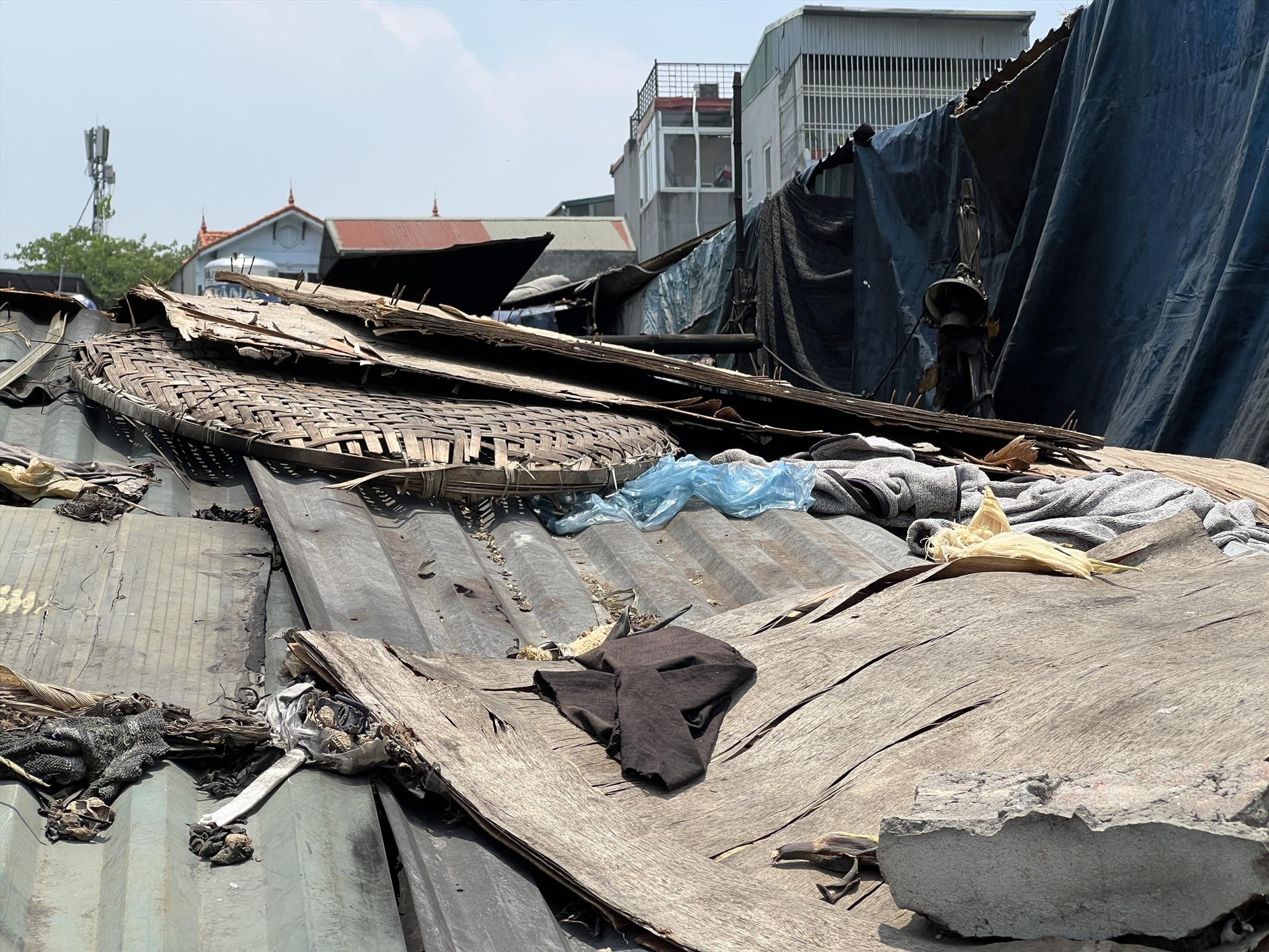 Nhiều vật dụng như quần áo cũ, ván gỗ... được người dân gác lên mái để phần nào giúp bên trong ngôi nhà bớt đi cái nóng.
