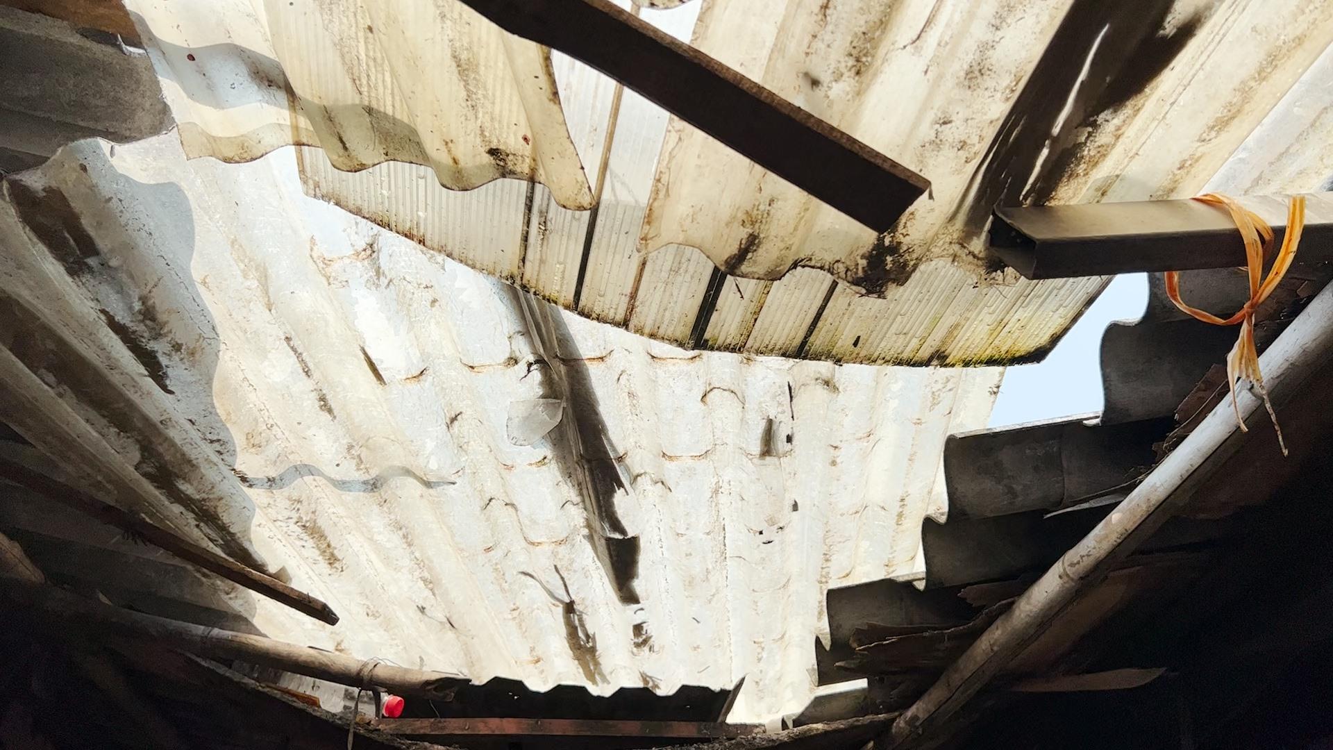 Nhiều vị trí mái tôn đã bị hư hỏng gây dột nát vào mùa mưa.