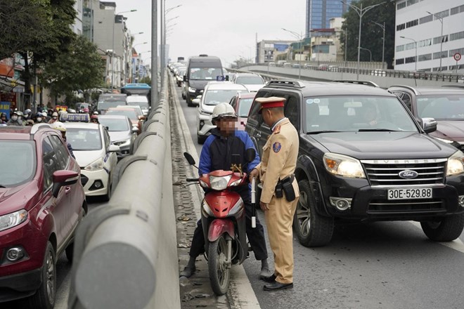 Theo Đại úy Cao Văn Tuấn, cán bộ Đội Cảnh sát giao thông số 3, Phòng Cảnh sát giao thông (Công an TP Hà Nội), lực lượng chức năng thường xuyên lập chốt để xử lý vi phạm. Mỗi ca, xử lý trung bình 10-15 trường hợp.