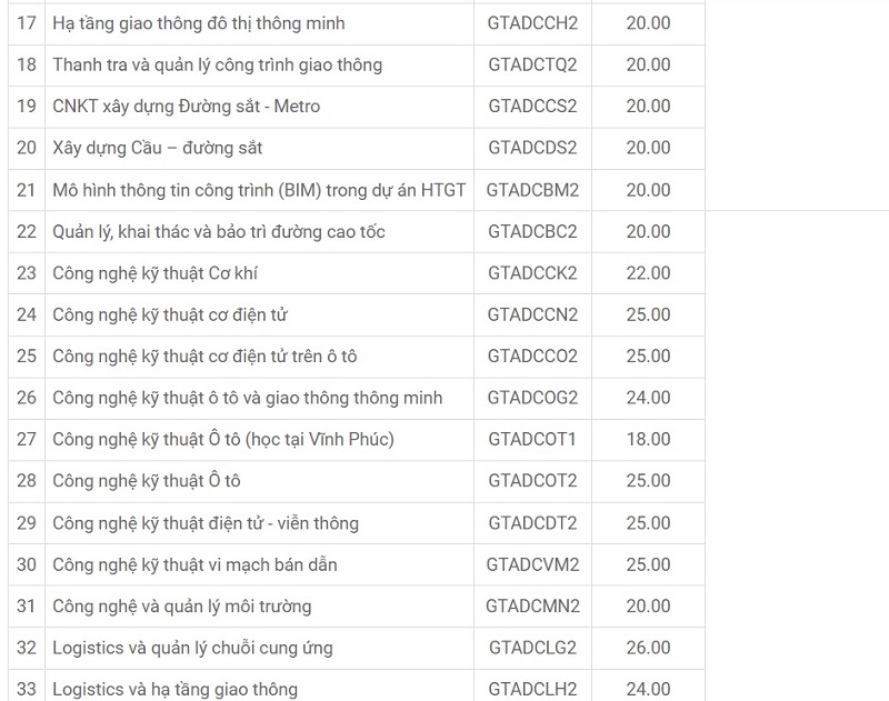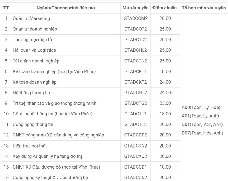 Điểm chuẩn học bạ Trường Đại học Công nghệ Giao thông Vận tải.