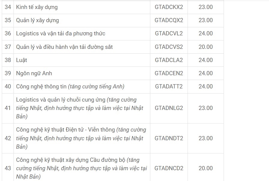 Mới đây nhất là Trường Đại học Công nghệ Giao thông Vận tải. Điểm chuẩn trúng tuyển vào trường bằng phương thức xét tuyển học bạ kết hợp, đợt 1 năm 2024 như sau: