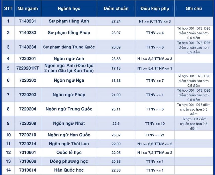 Điểm chuẩn Trường Đại học Ngoại ngữ, Đại học Đà Nẵng năm 2023.