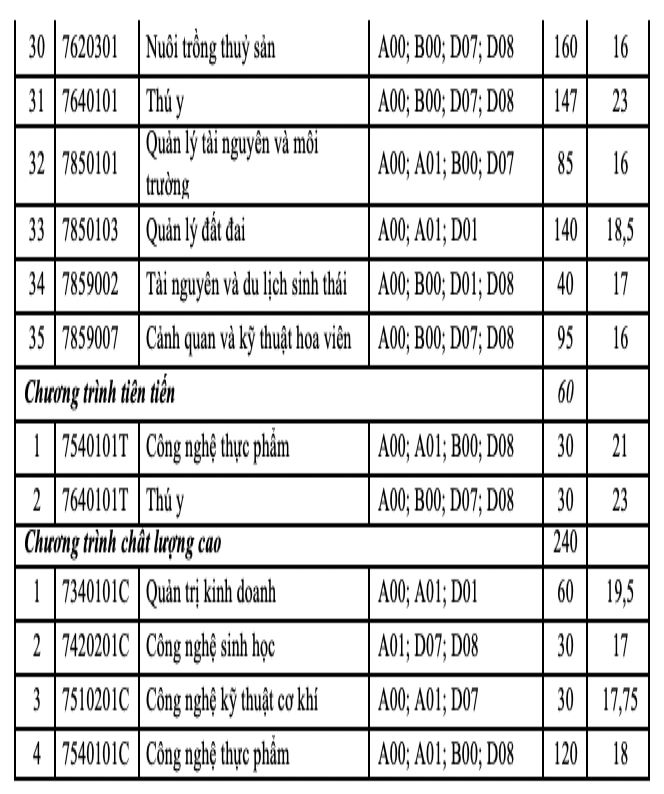 Theo đó, ngành Thú y (chương trình tiên tiến) có điểm chuẩn cao nhất 25 điểm.