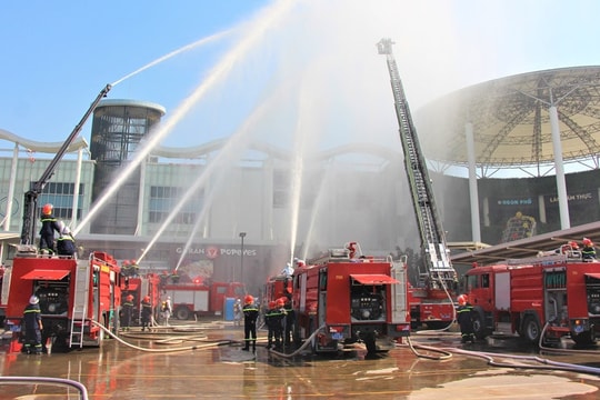 Diễn tập phương án phòng cháy, chữa cháy. Ảnh: Tiến Thành