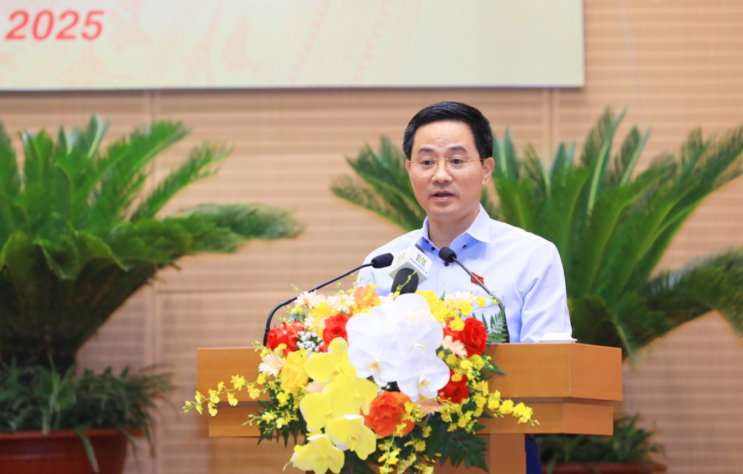 Giám đốc Sở Khoa học và Công nghệ Trần Anh Tuấn trình bày tờ trình tại kỳ họp. Ảnh: Viết Thành