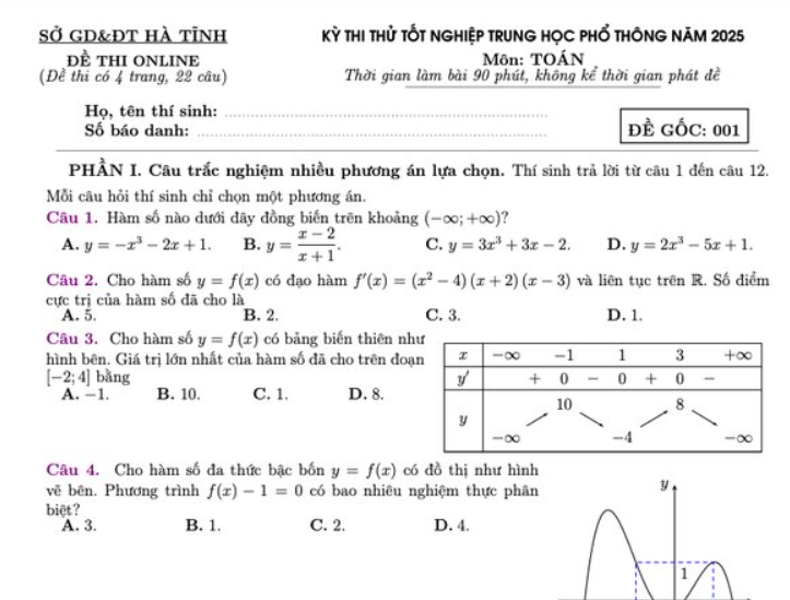 Hà Tĩnh công bố đề thi thử tốt nghiệp THPT môn Toán năm 2025