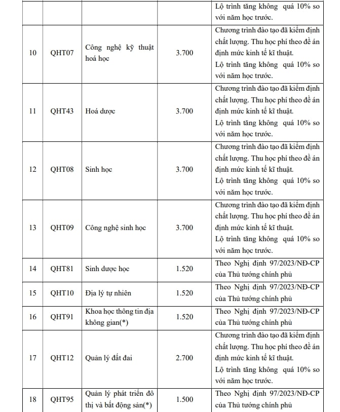 Học phí Trường Đại học Khoa học tự nhiên năm 2024