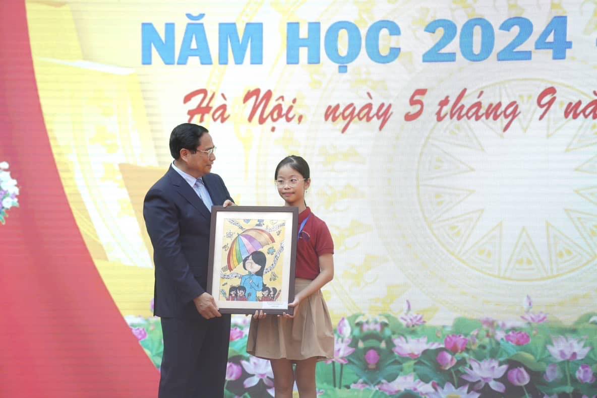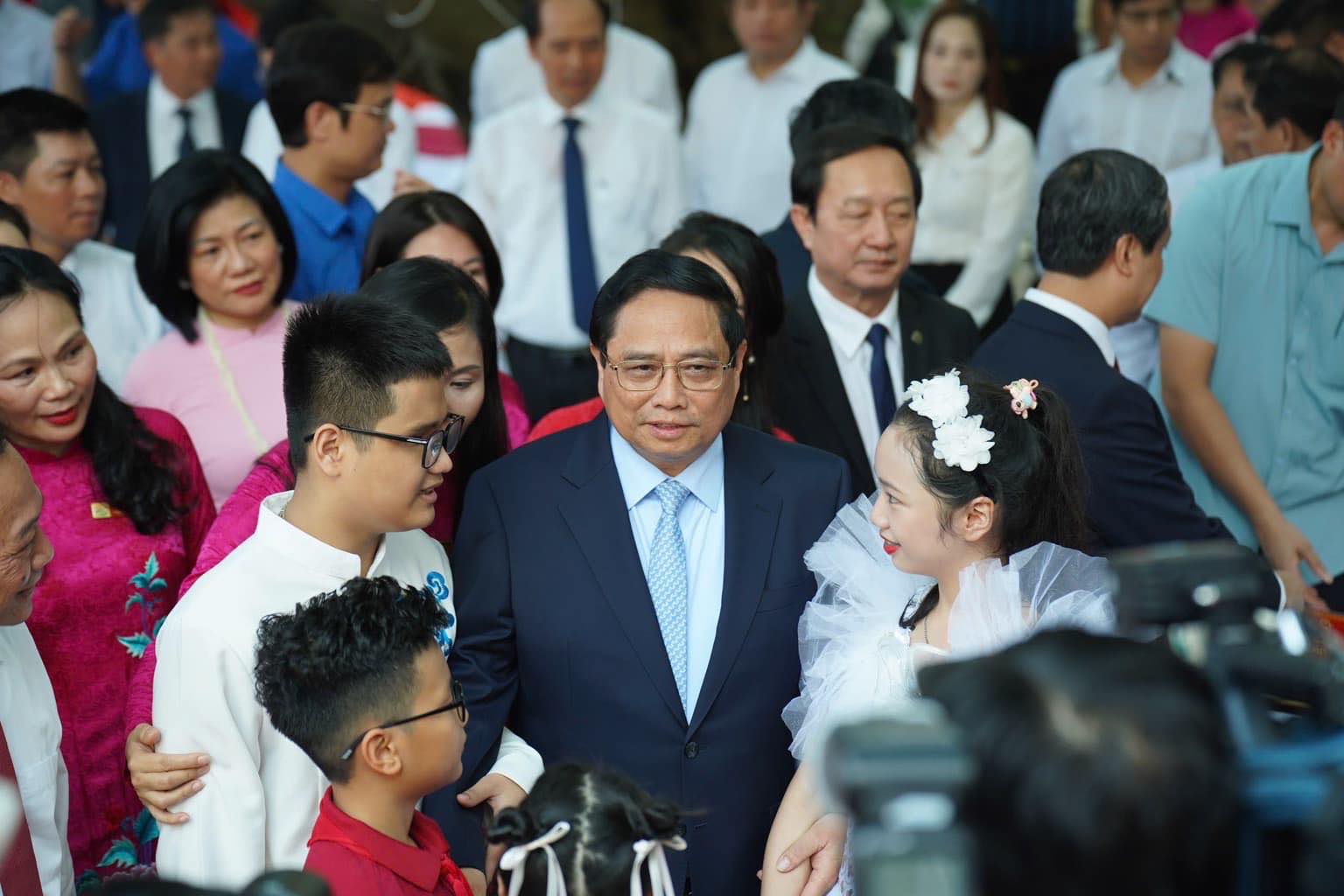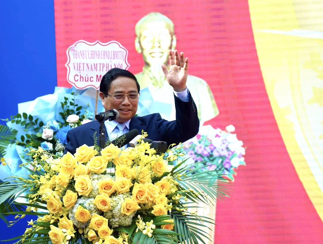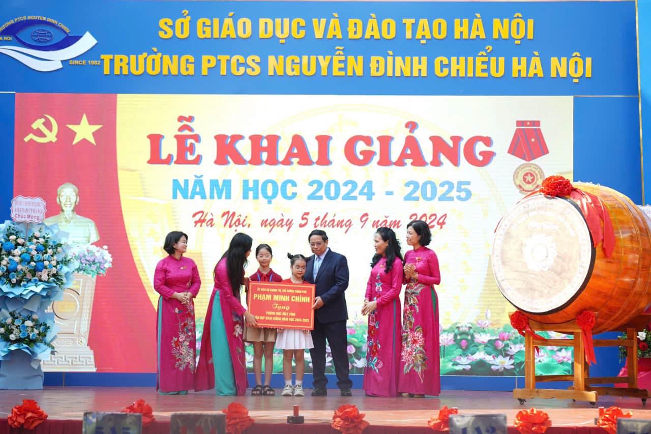 Thủ tướng Phạm Minh Chính và Bộ trưởng Nguyễn Kim Sơn dự lễ khai giảng tại Trường phổ thông cơ sở Nguyễn Đình Chiểu, Hà Nội. Ảnh: Hải Nguyễn
