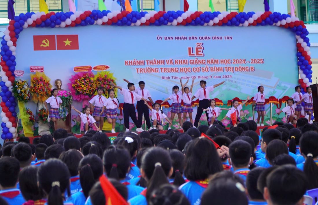 Lễ khai giảng tại đây trở nên đặc biệt hơn khi còn là lễ khánh thành của 7 ngôi trường mới được xây dựng ở quận Bình Tân.