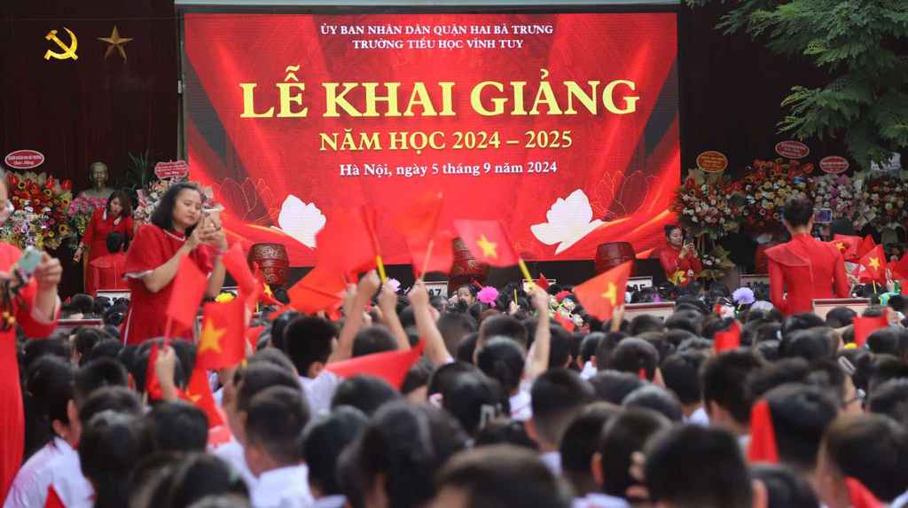 Cô Nguyễn Phương Hoa - Hiệu trưởng Trường Tiểu học Vĩnh Tuy cho biết, quan điểm của nhà trường, là buổi lễ khai giảng ngắn gọn, vui vẻ và tránh gây áp lực cho học sinh, giáo viên và cả phụ huynh trong việc dập dượt, chuẩn bị.