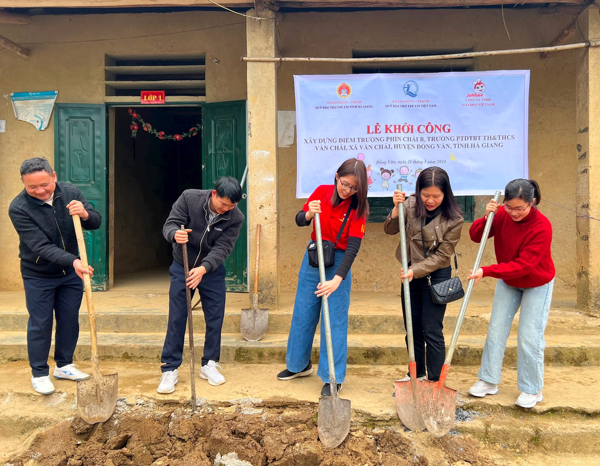 Trong khuôn khổ chuyến công tác tại tỉnh Hà Giang từ 20 đến 22-3, Quỹ Bảo trợ trẻ em Việt Nam đã phối hợp với Sở Lao động - Thương binh và Xã hội, Quỹ Bảo trợ trẻ em tỉnh Hà Giang và Công ty TNHH Jollibee Việt Nam tổ chức Lễ khởi công xây dựng điểm trường Phìn Chải B thuộc Trường Phổ thông dân tộc bán trú Tiểu học và THCS Vần Chải, xã Vần Chải, huyện Đồng Văn, ngày 21-3.