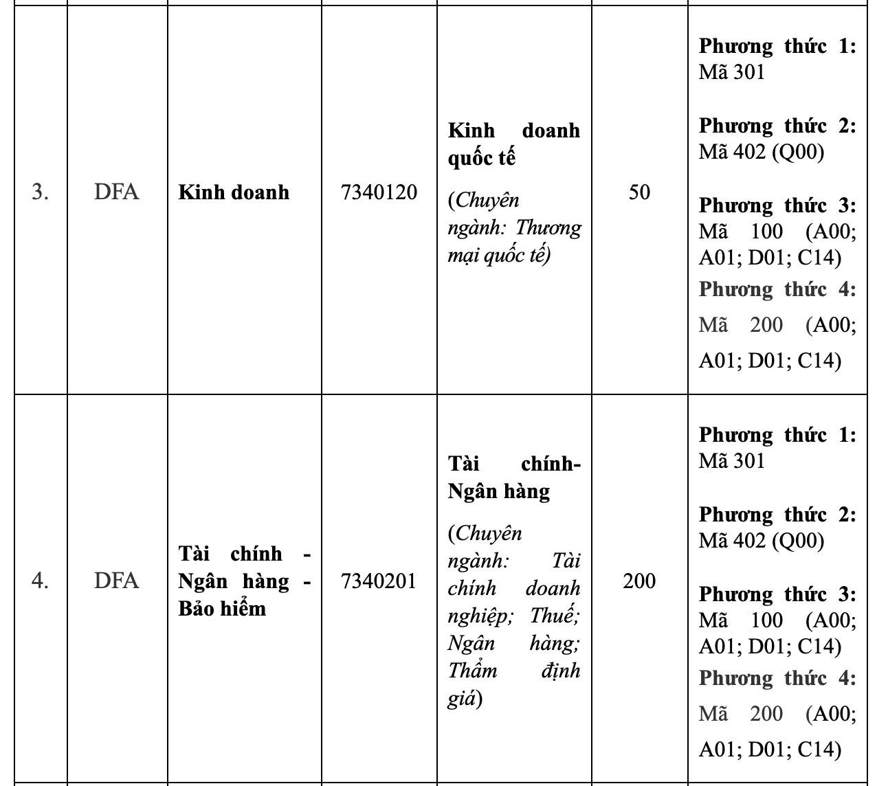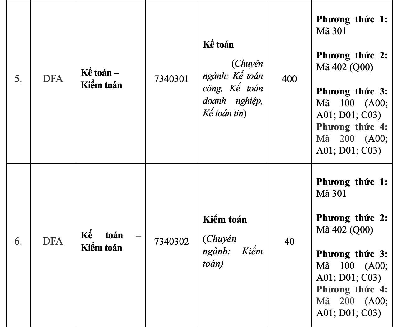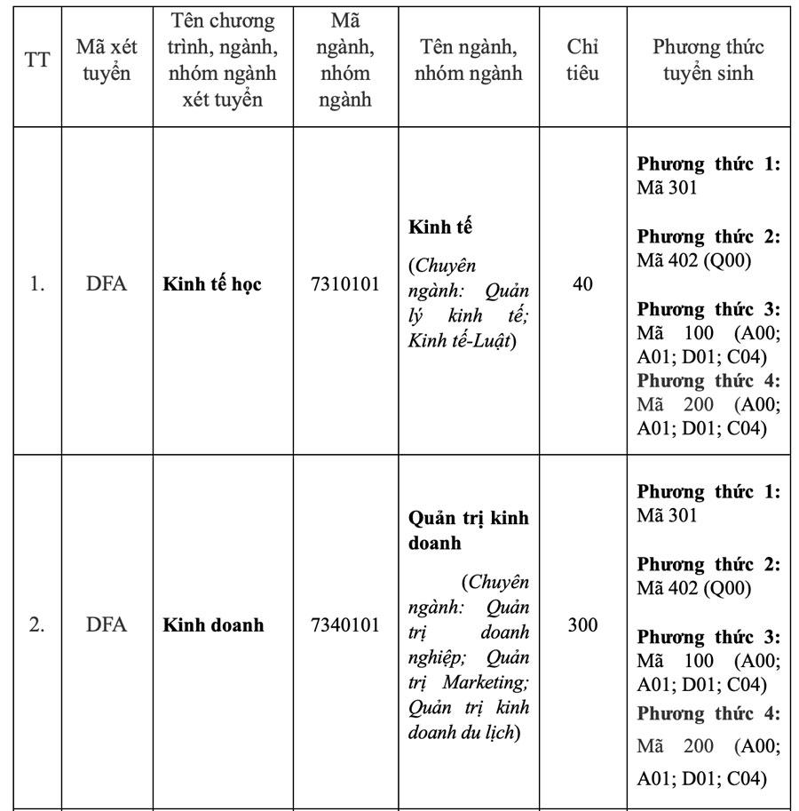 Phương thức tuyển sinh cụ thể như sau: