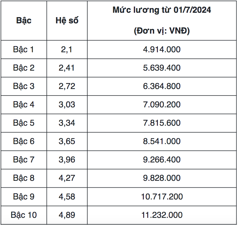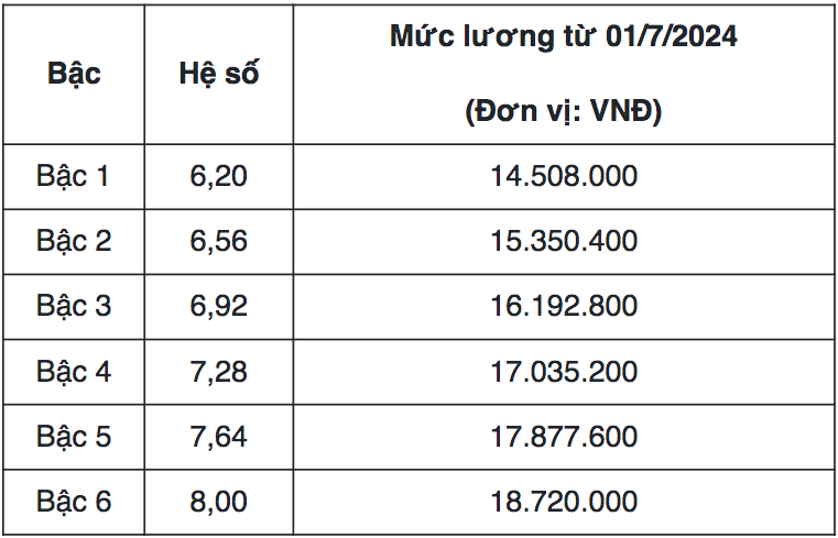 Theo đó, mức lương công chức tư pháp hộ tịch cấp xã từ 1.7.2024 sau khi tăng lương cơ sở lên 2,34 triệu đồng là: