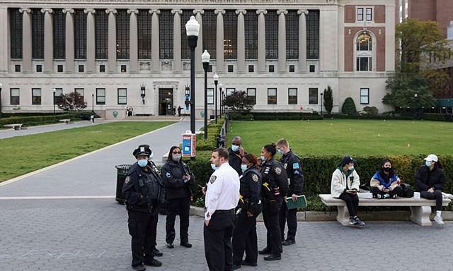 Cảnh sát có mặt tại khuôn viên trường học, sau khi nhận được tin đánh bom. (Ảnh: Reuters)
