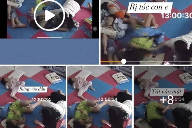 Ngoài ra, bài đăng còn có nhiều clip, hình ảnh thông qua camera cho thấy trẻ bị một người ở cơ sở mầm non có hành vi bạo hành như "búng vào đầu", "tát vào mặt"…