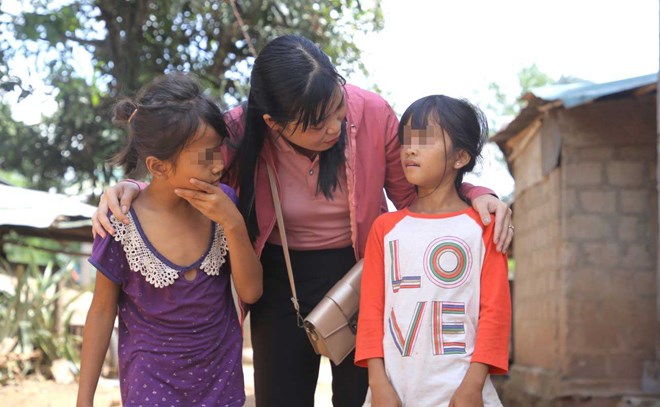 Giáo viên ở miền núi tỉnh Quảng Trị đến bản làng, dặn học sinh chuẩn bị cho năm học mới. Ảnh: Hưng Thơ