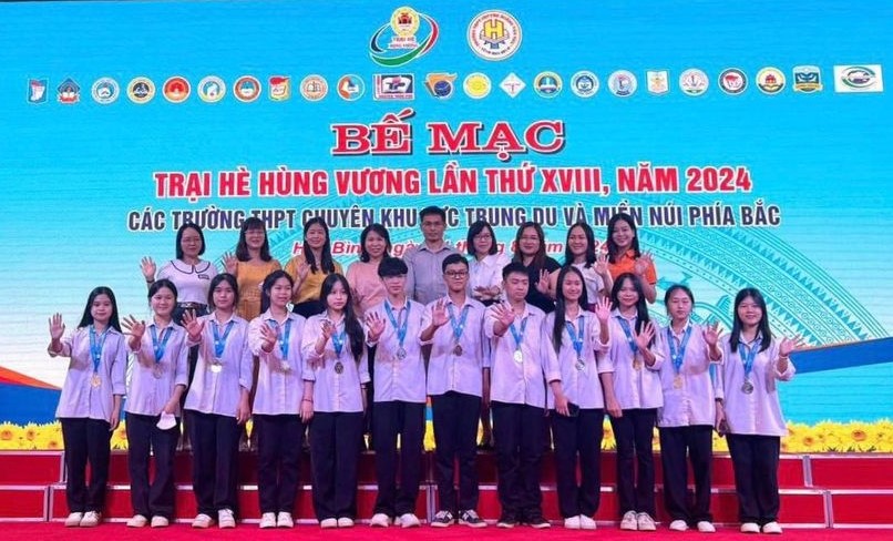 Các học sinh Trường PT Vùng Cao Việt Bắc đoạt giải tại Trại hè Hùng Vương lần thứ XVIII, năm 2024.