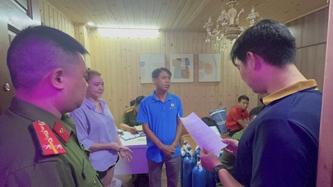 Cơ quan chức năng kiểm tra hoạt động của nhà hàng. Ảnh: Công an