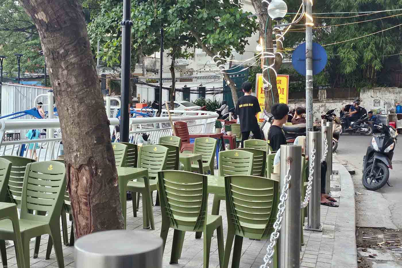 Lãnh đạo Công an phường Ô Chợ Dừa cho biết, tình trạng lấn chiếm vỉa hè, bờ hồ Hoàng Cầu đã diễn ra từ lâu.