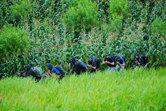 Các chiến sĩ nhập vai thâm nhập vào làng địa phương trong trang phục mộc mạc, đơn sơ của những người dân thường lao động
