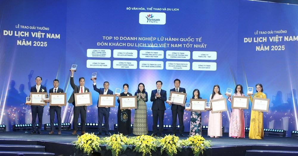 Lễ trao Giải thưởng Du lịch Việt Nam 2025 sáng 27.9 đã để lại dấu ấn sâu sắc với nghệ thuật, nghi lễ, phát biểu và phần vinh danh 113 tập thể tiêu biểu. Chương trình được truyền hình trực tiếp trên VTV1, lan tỏa thông điệp “Du lịch Việt Nam: Thông minh – Bản sắc – Bền vững” đến hàng triệu khán giả trong và ngoài nước.