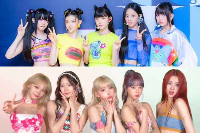 Nhóm nhạc nữ NewJeans và LE SSERAFIM. Ảnh: HYBE