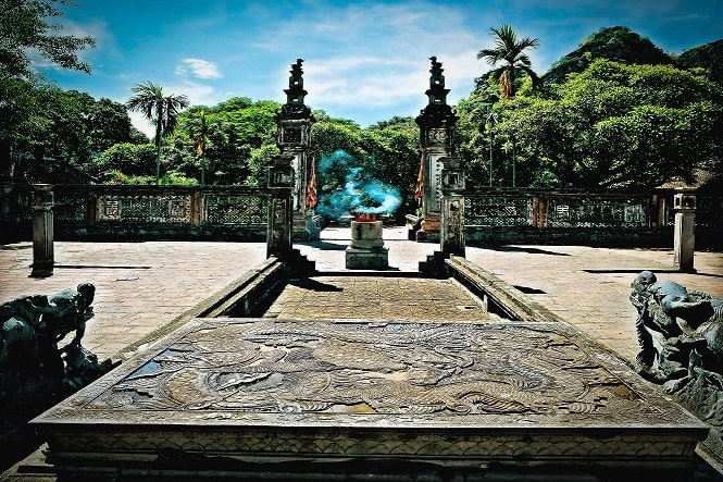 Khu di tích quốc gia đặc biệt Cố đô - Hoa Lư ngày nay nằm trong Quần thể danh thắng Tràng An - Di sản văn hóa và thiên nhiên thế giới, mỗi năm thu hút hàng triệu lượt du khách đến tham quan. Vì thế, giá trị lịch sử, văn hóa của cặp long sàng, bảo vật quốc gia ngày càng phát huy giá trị mà cha ông để lại cho hậu thế. Ảnh: Ninh Mạnh Thắng
