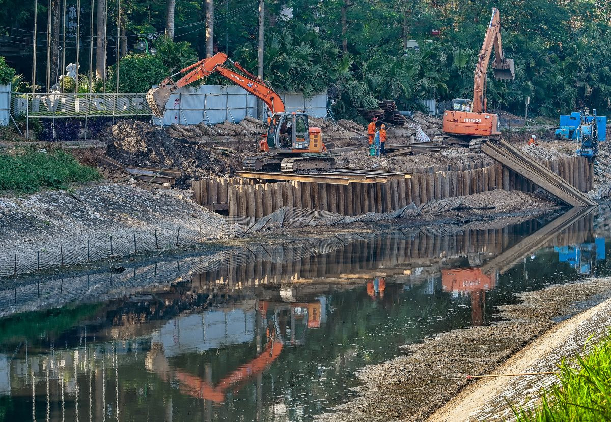 Xây dựng hệ thống cống bao gom nước thải hai bên sông Tô Lịch. Ảnh: Nguyễn Văn Học