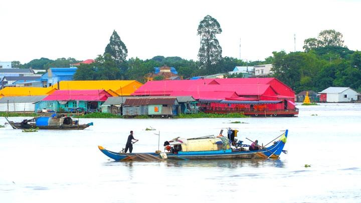 Làng bè rực rỡ sắc màu trải dài hơn 1km từ ngã ba sông Châu Đốc đến làng Chăm (huyện An Phú, tỉnh An Giang) hiện đang là điểm đến nổi bật, nhận được nhiều sự quan tâm của du khách khi đến với miền Tây trong thời gian gần đây.