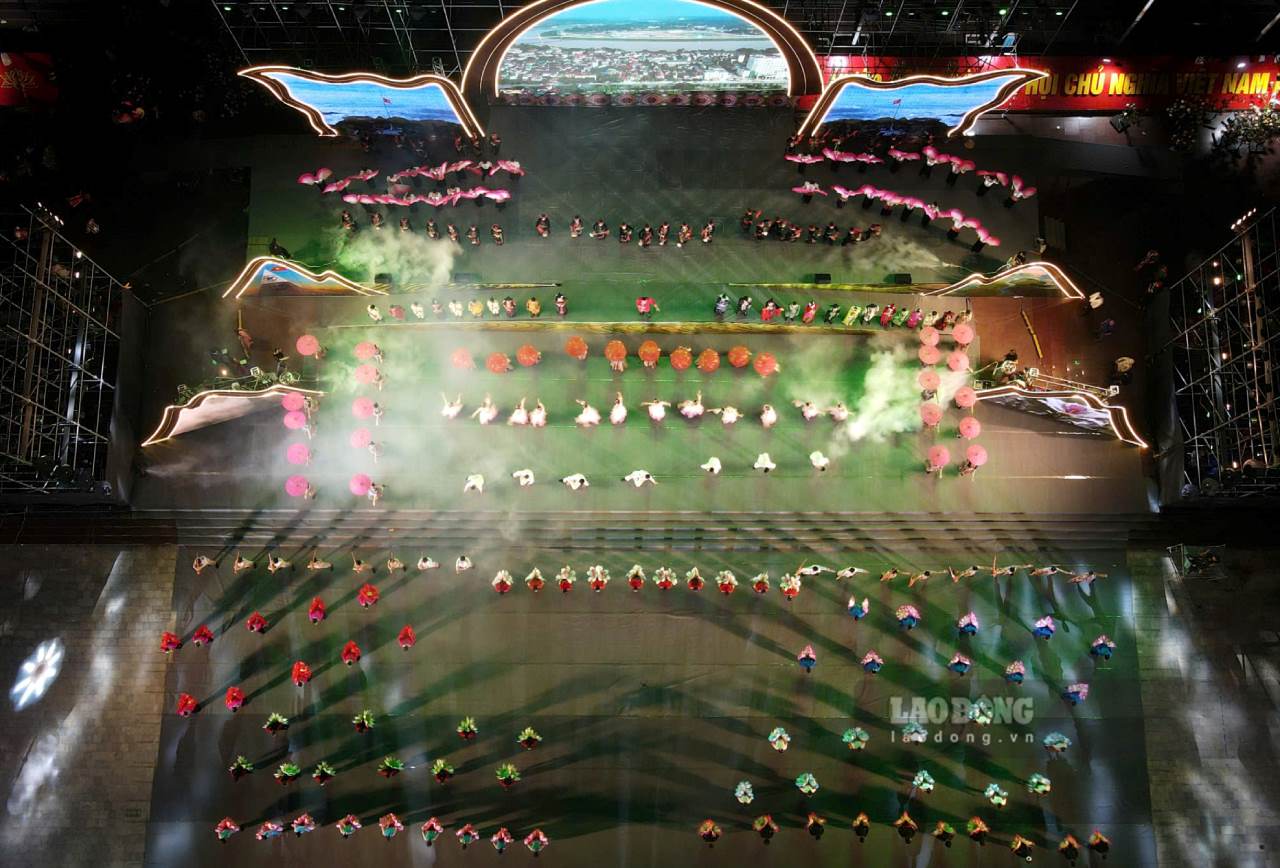 Tiếp nối chương trình là các tiết mục nghệ thuật được dàn dựng công phu với 3 chương quy tụ trên 1.300 diễn viên chuyên nghiệp và quần chúng.