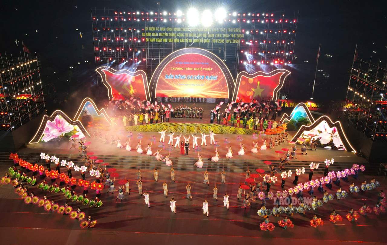 Lào Cai - Tối 11.8, Chương trình nghệ thuật đặc biệt với chủ đề “Bản hùng ca cách mạng” được tổ chức, thu hút hàng nghìn người dân theo dõi.