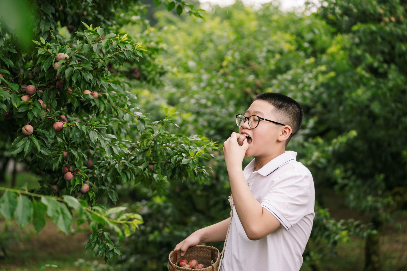 Hè về hái mận ruby chín đỏ trong vườn ở Mộc Châu