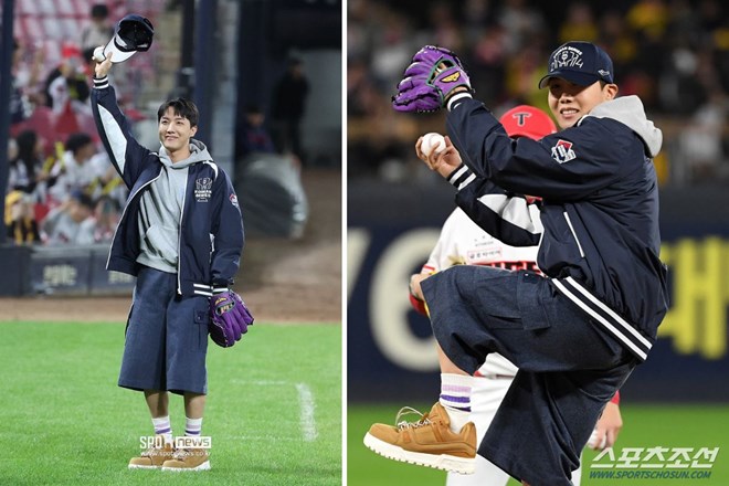 J-Hope không chỉ thực hiện xuất sắc cú ném đầu tiên, anh còn khiến ARMY (fandom BTS) ngạc nhiên khi khoe chiếc găng tay màu tím, nhằm tôn vinh màu sắc đặc trưng của BTS.