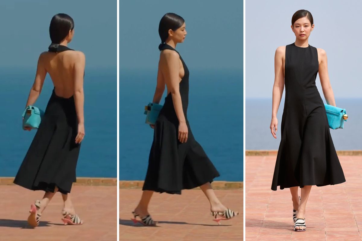 Đáng chú ý, Jennie không chỉ là người mẫu thông thường, mà cô được giao nhiệm vụ người mẫu kết màn (vedette) cho show. Ngôi sao Kpop mặc chiếc váy không tay, khoe lưng trần, kết hợp kiểu tóc búi thấp và trang điểm đơn giản.